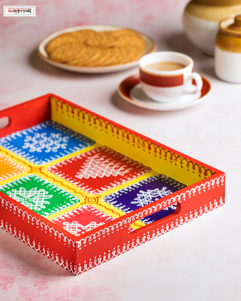 KOLAMS AT DOOR ENTRANCES TRADITIONALLY WELCOME GUESTS IN MOST INDIAN HOME. HOW ABOUT AN अबnoरmal TWIST TO THAT BY WELCOMING GUESTS WITH A TRAY FULL OF EATS & COASTERS HOLDING PIPING HOT CHAI OR COFFEE THAT HAVE KOLAMS HANDPAINTED ON...