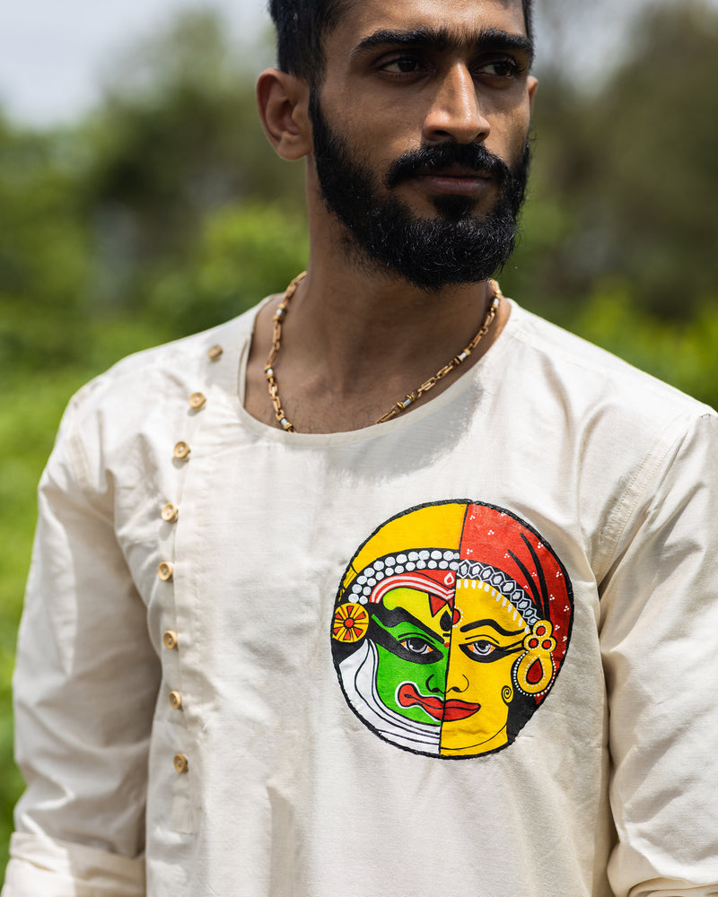 Men's fashion never looked so glam & zara hatke before! Handpainted Kathakali faces of Nar-Mada to sizzle up your man's style quotient this festive season!   [custom tab] Kathakali (കഥകളി) is one of the major forms of classical Indian dance....