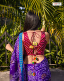 Presenting “Rang Barse“ in 6 eye popping shades with hand knotted bandhani on pure Handloom gajji silk. Don’t miss the peep hole vertical slit at the back with 3 sets of doris that have pichkaris & color bursts as tassles!