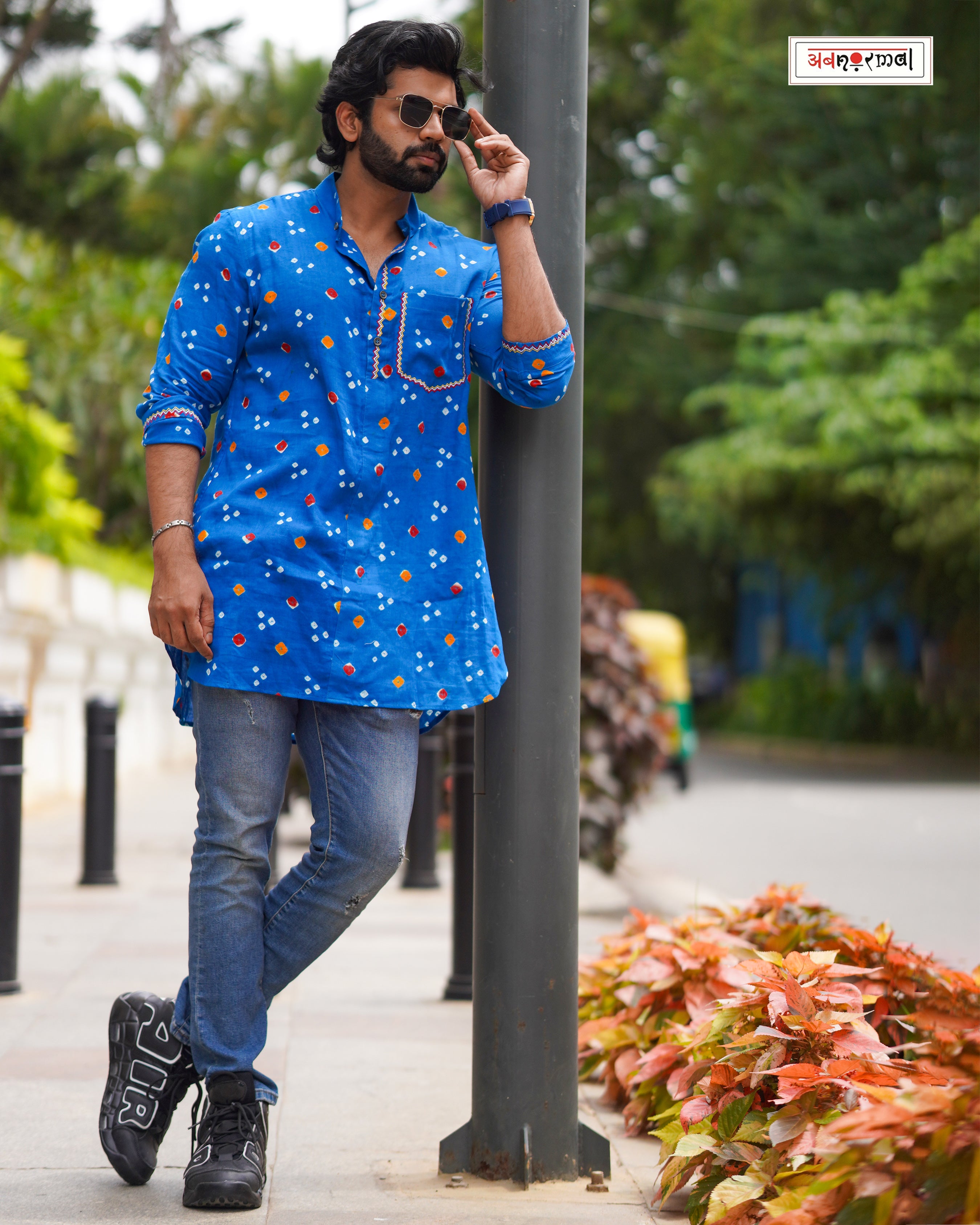 Presenting “Rangeelo Maaro Dholna” short kurtas for men from अबnoरmal for the festive season ahead! Men’s fashion never looked so glam before!