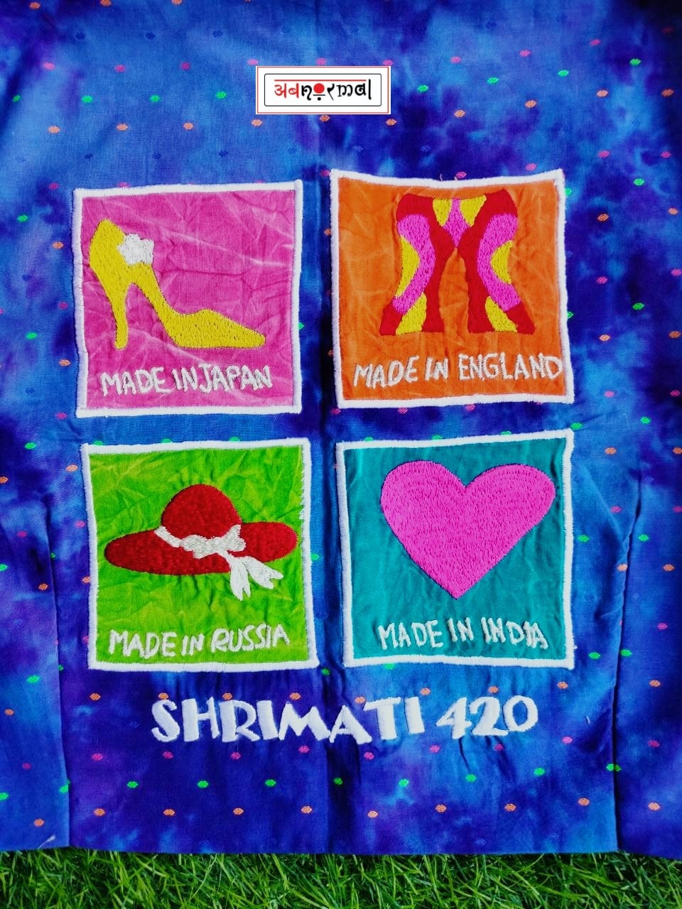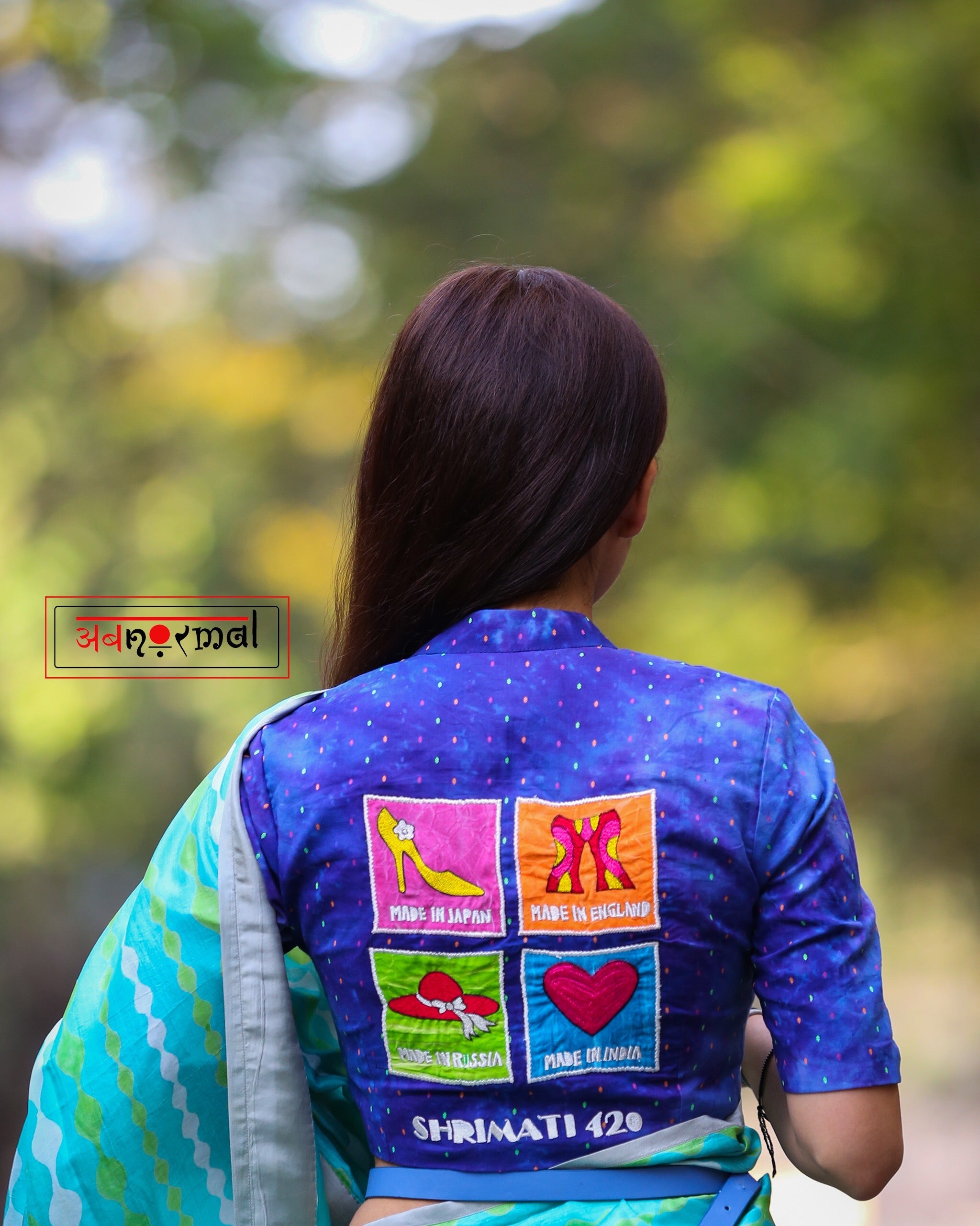 Presenting the “Shrimati 420” choli an attempt to immortalise one of his many songs choli के पीछे. This song by lyricist Shailendra, to music by Shankar-Jaikishan sung as always by Mukesh for Raj Kapoor became a patriotic anthem for the newly independent India. Way back then Shailendra gave us a peek into international fashion, being a global citizen yet a proud Indian!