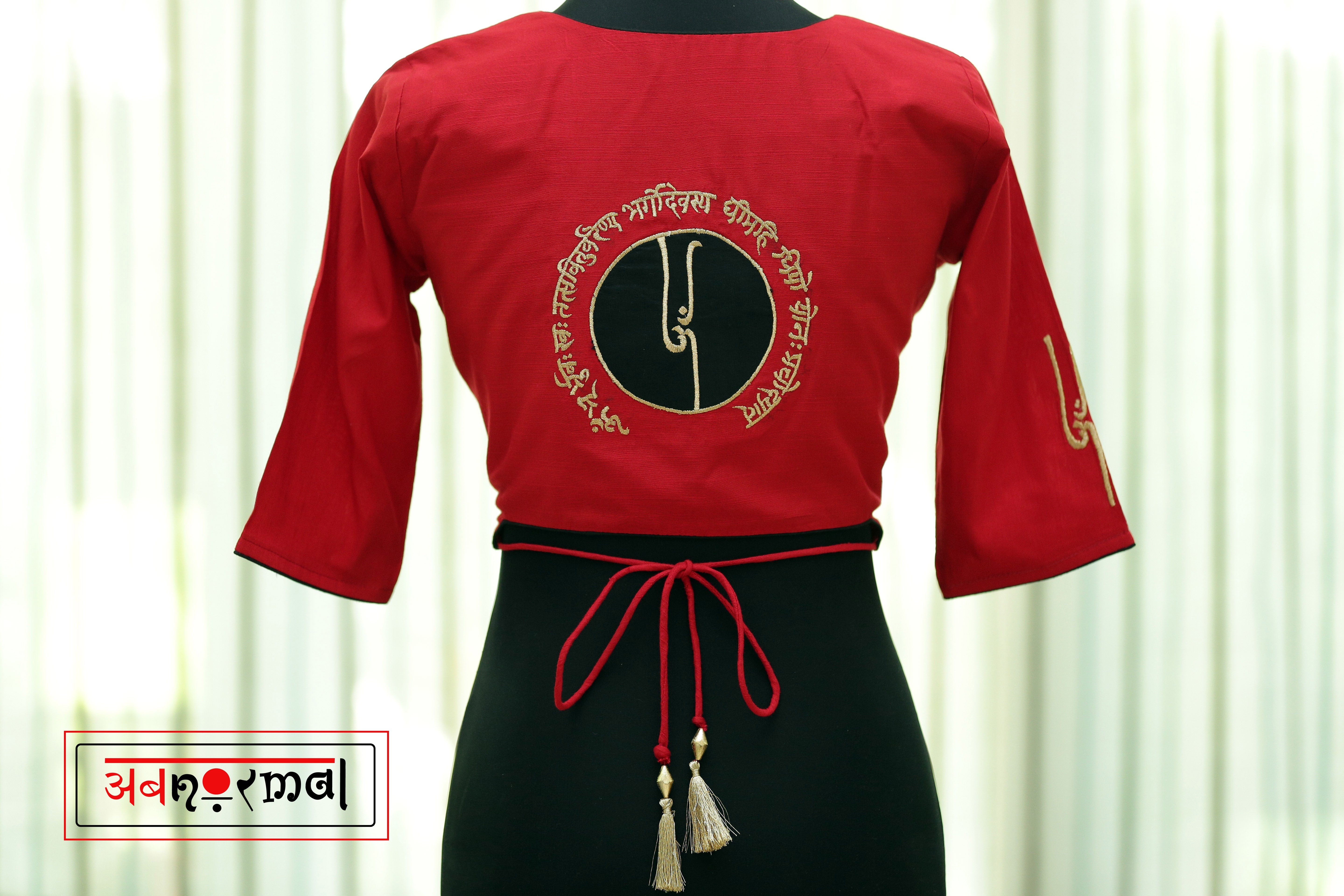 The Gāyatrī Mantra, also known as the Sāvitar Mantra, a highly revered mantra from the Rig Veda dedicated to Savitr, the sun deity. Vishvamitra is said to have created the Gayatri mantra. And, matching cholis handmade perfection in 2 gorgeous options.