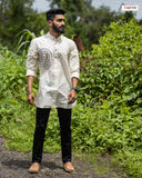 This Short Kurta can be made available in 4 shades - Golden Beige, Ivory, Black & Navy Blue.