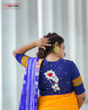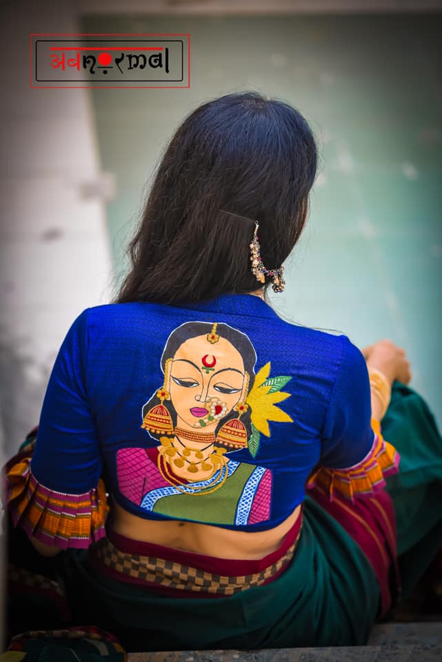 Presenting “Champa”; a fully handpainted face of a beautiful Koli woman dressed in her finery & later highlighted with embroidery for added impact. The typical jewellery & Champa flower is painstakingly detailed & exquisite.