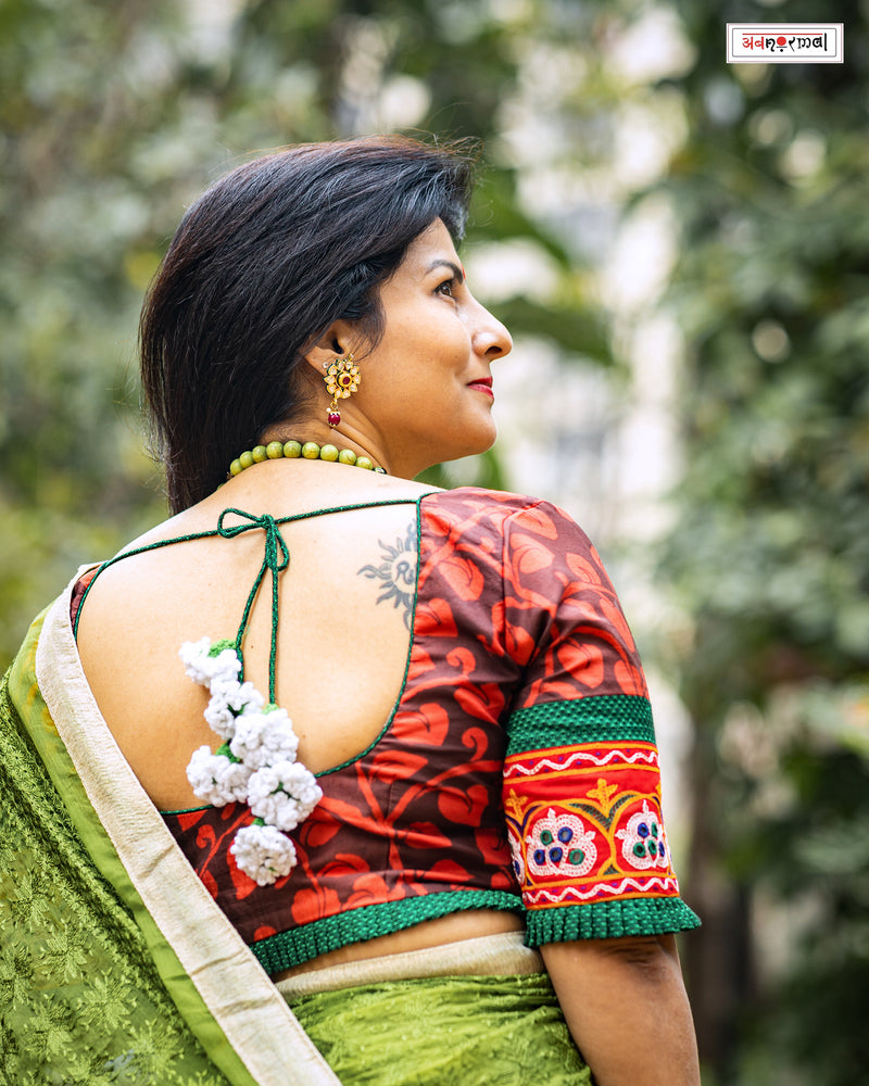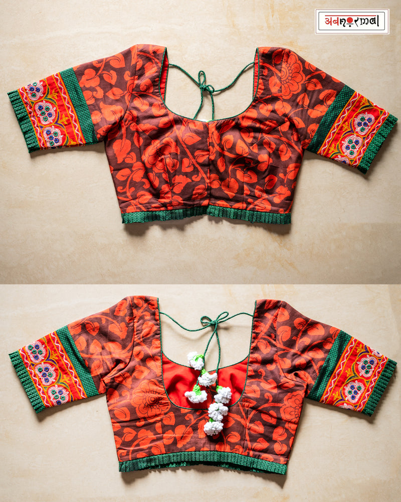 Aane-Navilu-Kubsa (Green & Orange) - Choli